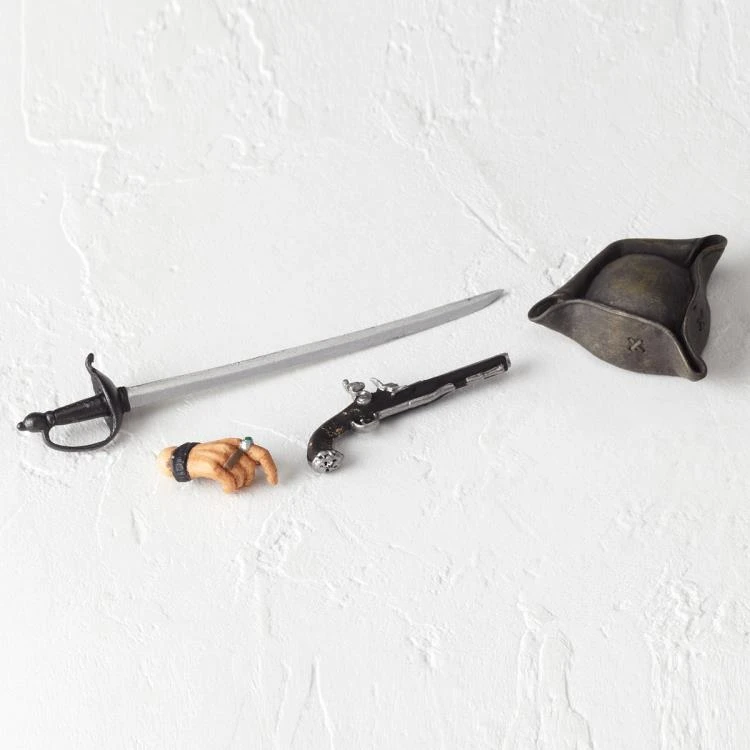 The costume that expresses details from the dreadlock hair bundle to the texture of leather and cloth uses soft materials for each part, making it possible to pose widely. The equipment in the play is also substantial, such as a triangular pirate hat, a curved sword cutlass that can be pulled out from the sheath at the waist, and a pistol loaded with one bullet with a vow of revenge.