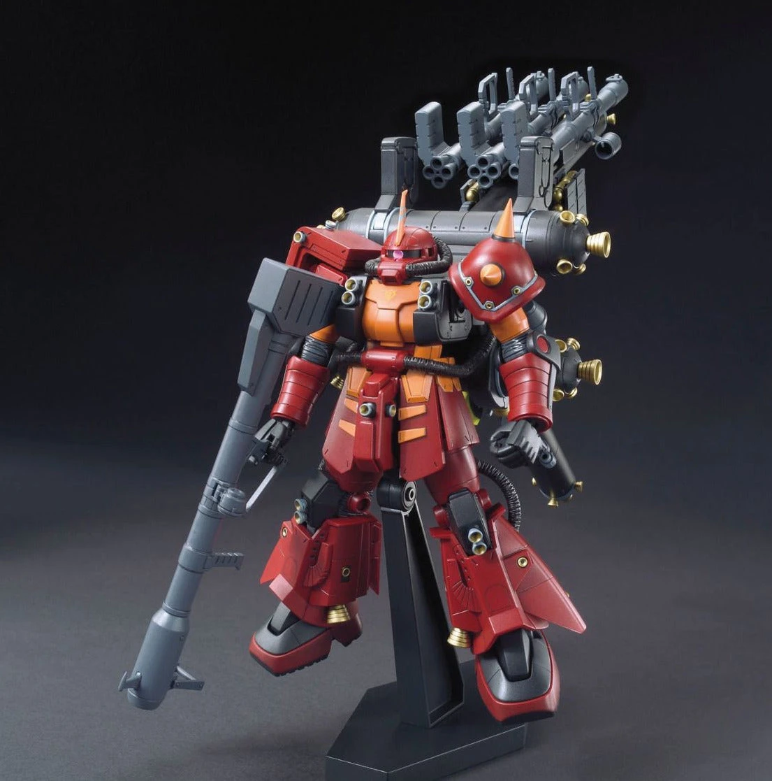 High Mobility Type Zaku, armed with Reuese P Device, various weapons and the rocket booster. Can recreate sub-arms by replacing parts. The sub-arms are able to grab weapons. Each marking can be recreated with decals supervised by Mr. Otagaki. The image on the package was newly drawn by Mr. Otagaki.