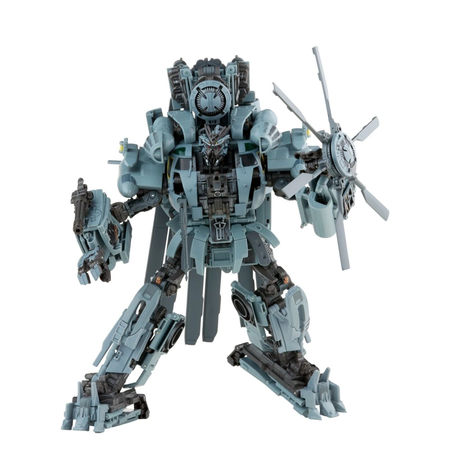 From Takara Tomy and Hasbro Transformers Masterpiece MPM-13 Blackout jumps straight out of the big screen and into your collection. MPM-13 Blackout stands features an extreme level of detail and likeness to his appearance in the Transformers: The Movie live action movie. MPM-13 Blackout is highly articulated and transforms from helicopter to robot and back and as a Masterpiece scaled figure he scales with other MP scaled figures in the Transformers Masterpiece toyline. Masterpiece Transformers offer an extreme high attention to detail and jump straight out of the Transformers: The Movie and into your collection.