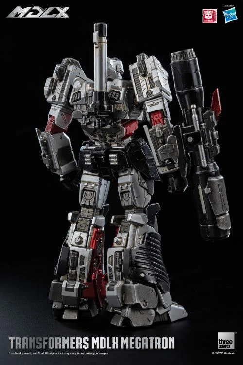 Transformers – MDLX Megatron is approximately 7 inches tall, with approximately 45 points of articulation and a die-cast metal frame. Accessories include one fusion cannon, one back cannon, and four sets of interchangeable hands.